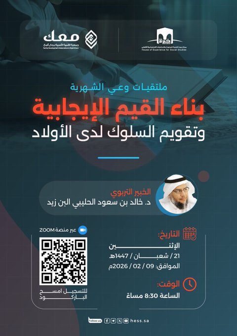بعنوان: بناء #القيم الإيجابية وتقويم السلوك لدى الأولاد تقديم الخبير الأسري: د.خالد بن سعود الحليبي