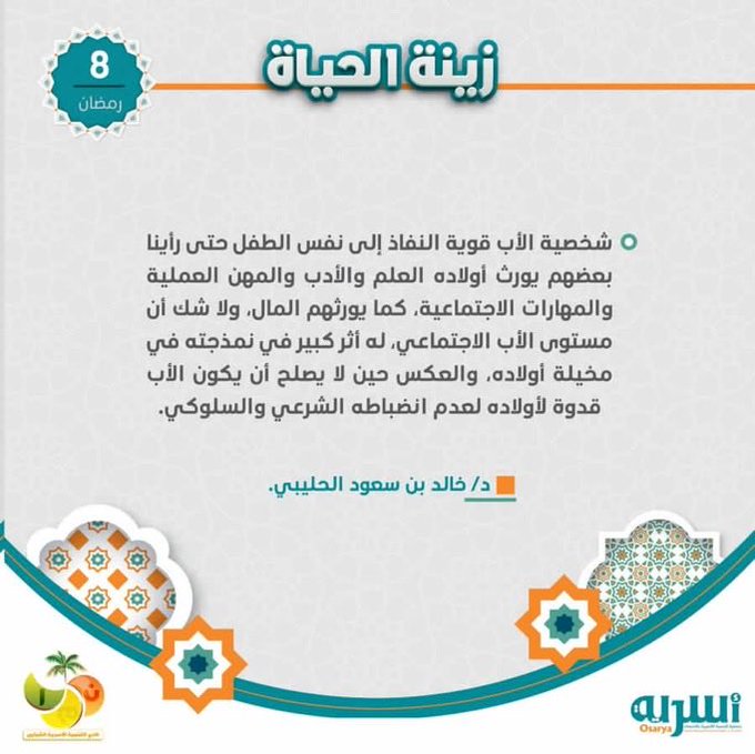 للفتيات والنساء فقط : يدعوكن مركز رواسم للفتيات التابع لجمعية رواسم إلى حضور أمسية رمضانية بعنوان: مرَّ وهذا الأثر مساء اليوم الخميس 9 رمضان 1447هـ (26 فبراير). 10:00 – 11:00 ليلًا إن شاء الله تعالى د.خالد بن سعود الحليبي -البث عبر برنامج تيلجرام- للتسجيل في البرنامج: https://forms.cloud.microsoft/r/xYP4SHLDSG للدخول المباشر للقناة: https://t.me/rwasimgirls